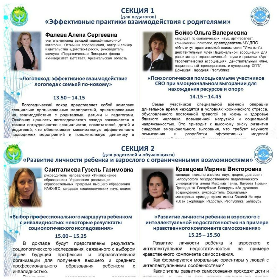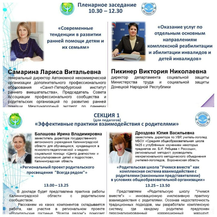 В этом году конференция проведена в смешанном формате: дистанционном и очном. В первый день Конференции в онлайн формате спикерами выступили 19 специалистов Донецкой Народной Республики, города Москвы, Архангельской, Воронежской, Ленинградской областей и Республики Беларусь. К трансляции подключилось около 1000 участников: родители (законные представители), работники системы образования, специалисты системы здравоохранения из Донецкой Народной Республики, Луганской Народной Республики, а также слушатели отдельных регионов Российской Федерации.