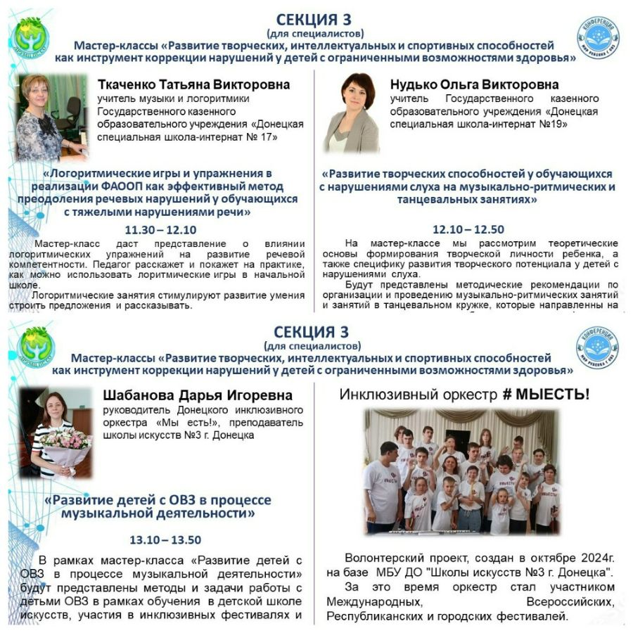 Конференция «Мир ребенка с ограниченными возможностями здоровья» проводится в Донецкой Народной Республике уже третий год подряд. В мероприятии принимают активное участие специалисты системы образования и здравоохранения, социальной защиты населения Донецкой Народной Республики и других регионов Российской Федерации, а также Республики Беларусь.